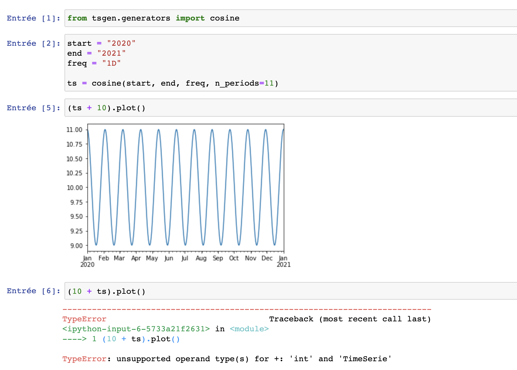 In the file generators.py, we define functions that generate TimeSerie objects, such as sine or affine from the previous notebook: